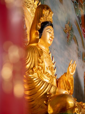 南山觀音寺依據:南山之陽,面對北市南海之美,得天地山川之靈氣,巍峨雄偉,畫棟雕樑,法相莊嚴,貝葉梵音,佛光普照,十方善信虔誠膜拜,香火鼎盛。