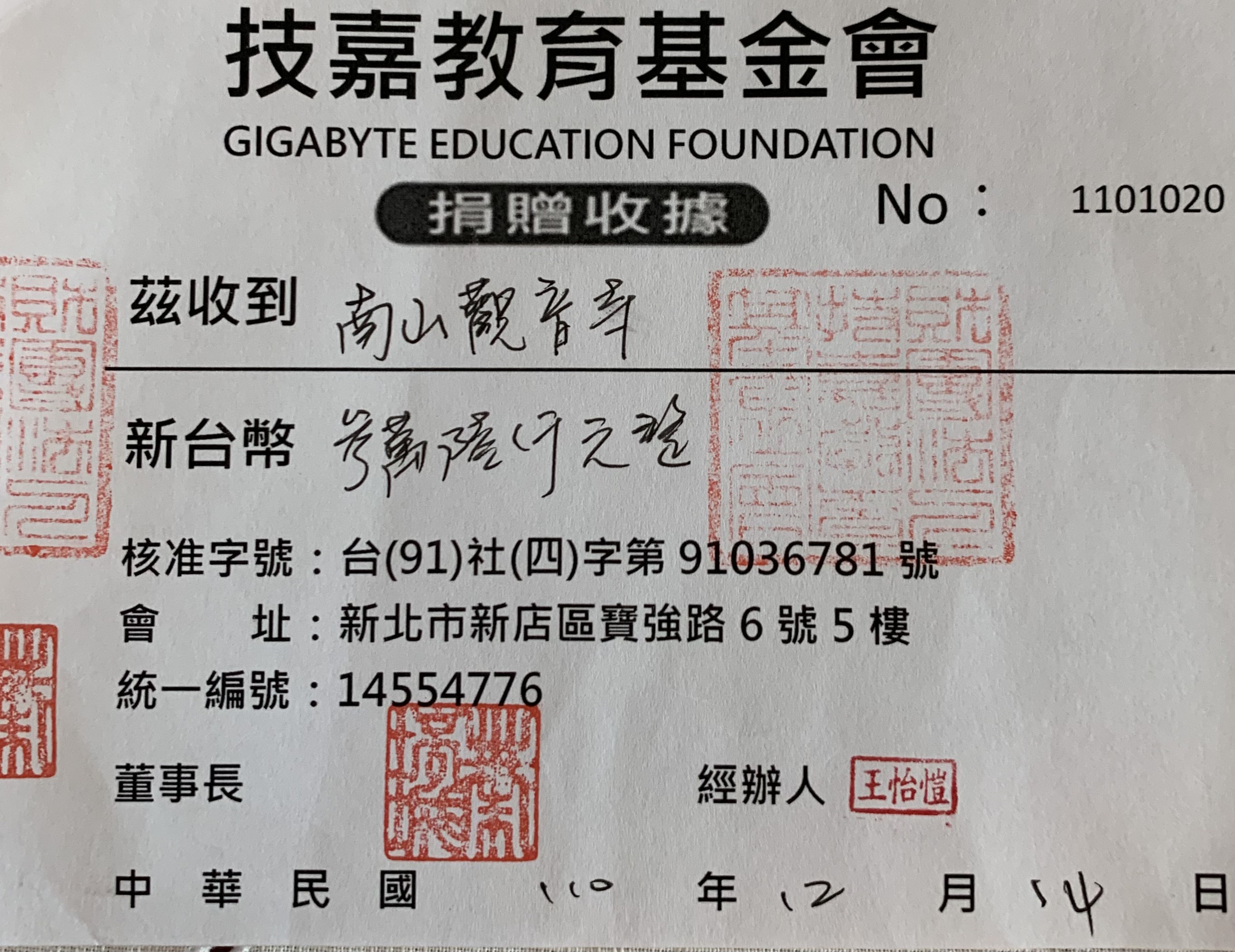 捐款(技嘉教育基金會~突遭變故學生助學金)