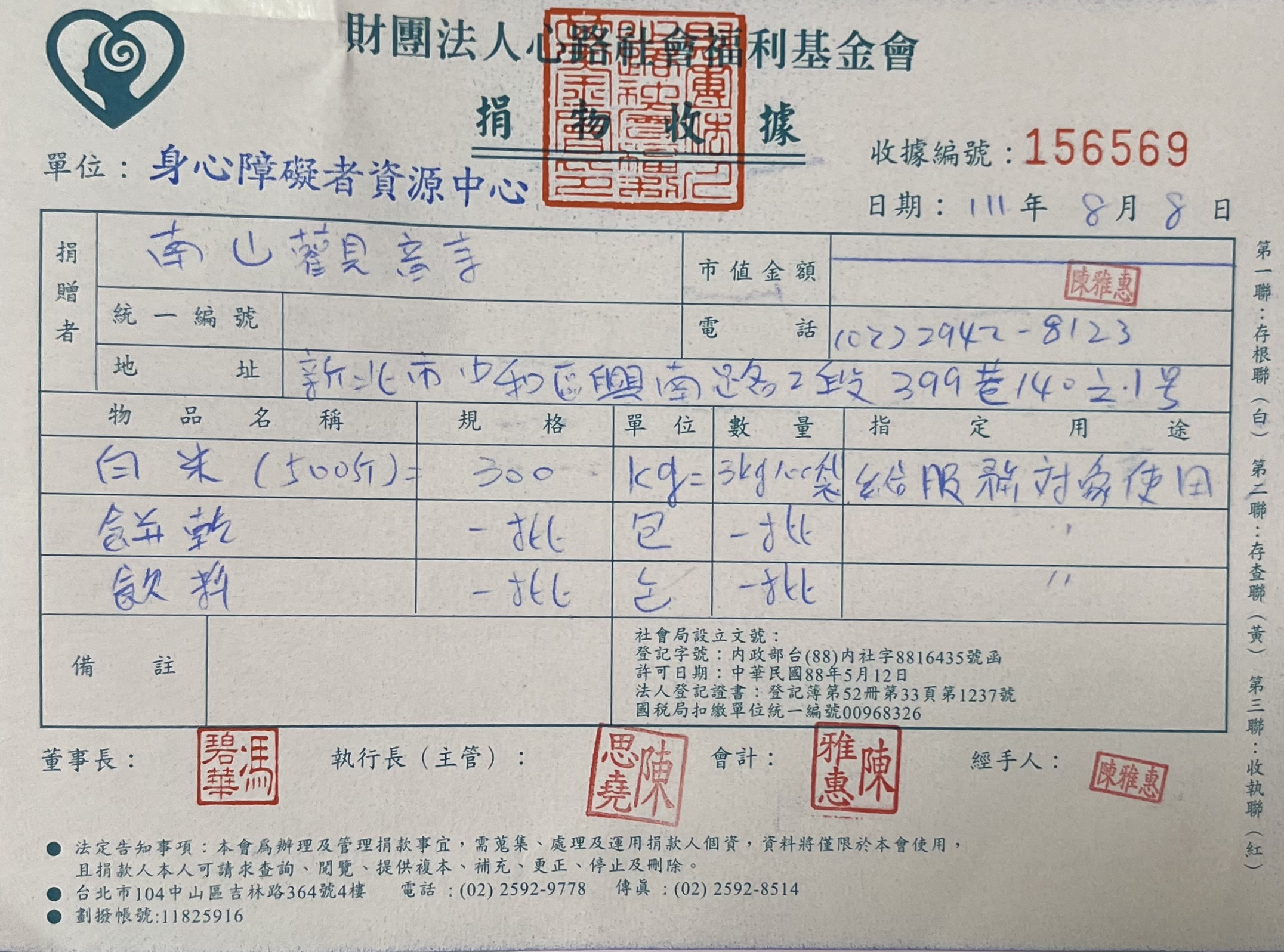 捐贈物品(心路社會福利基金會)