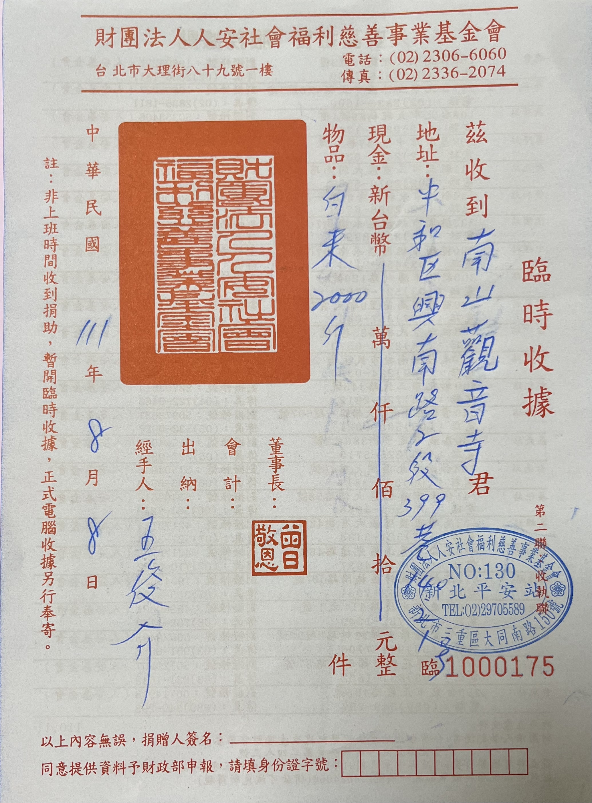 捐贈物品(人安社會福利基金會)