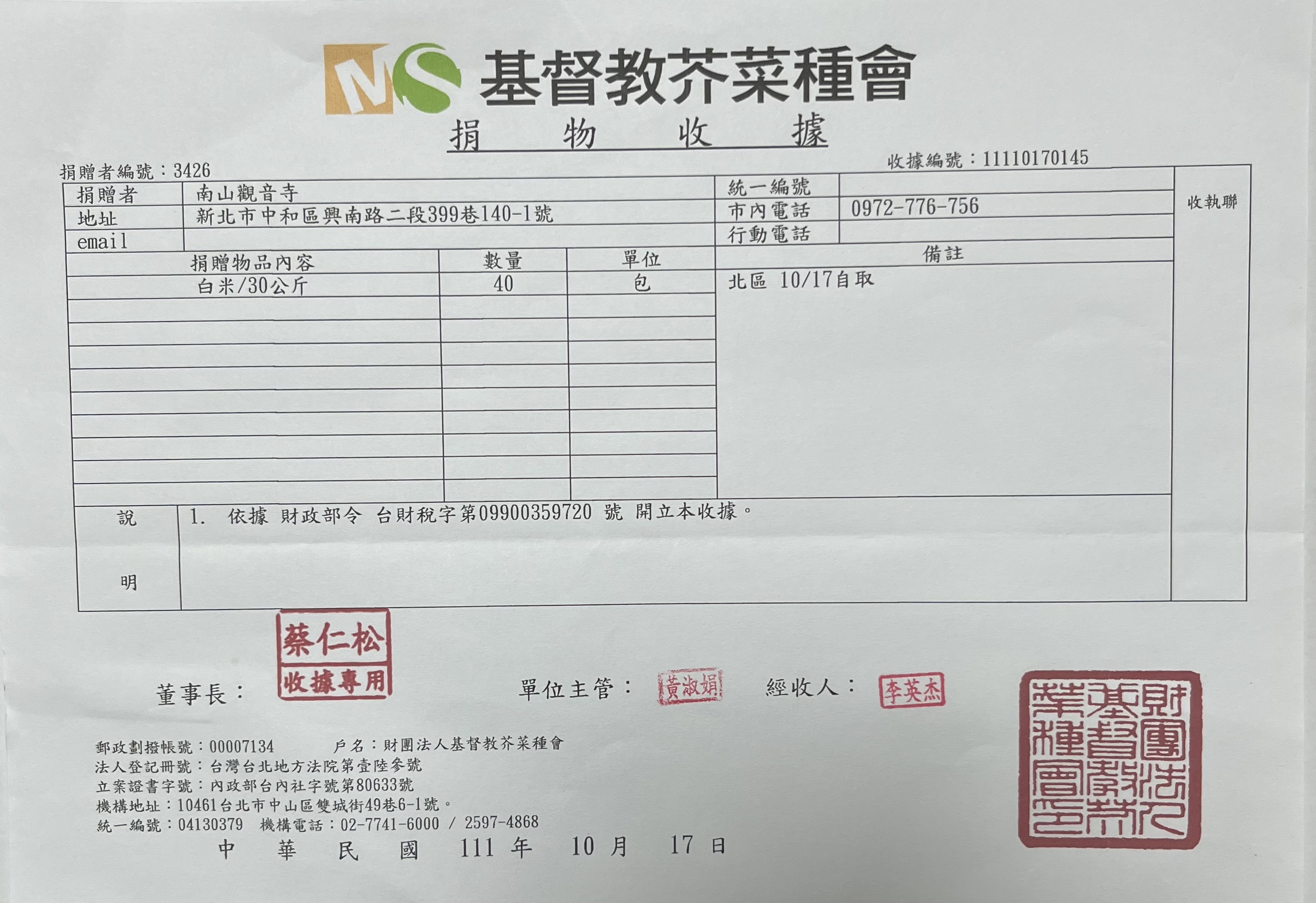 捐贈物資(基督教芥菜種會)