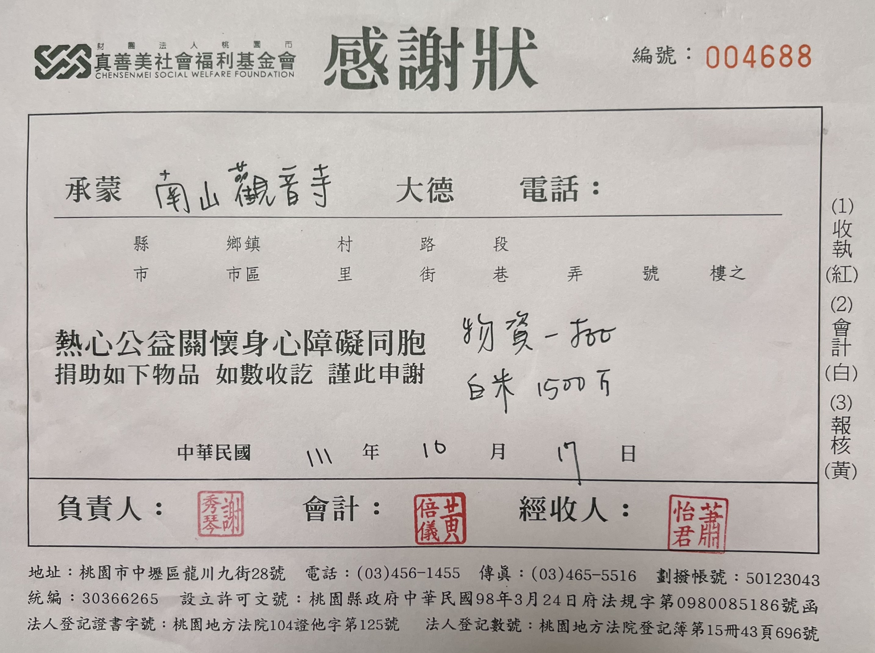 捐贈物資(真善美社會福利基金會)