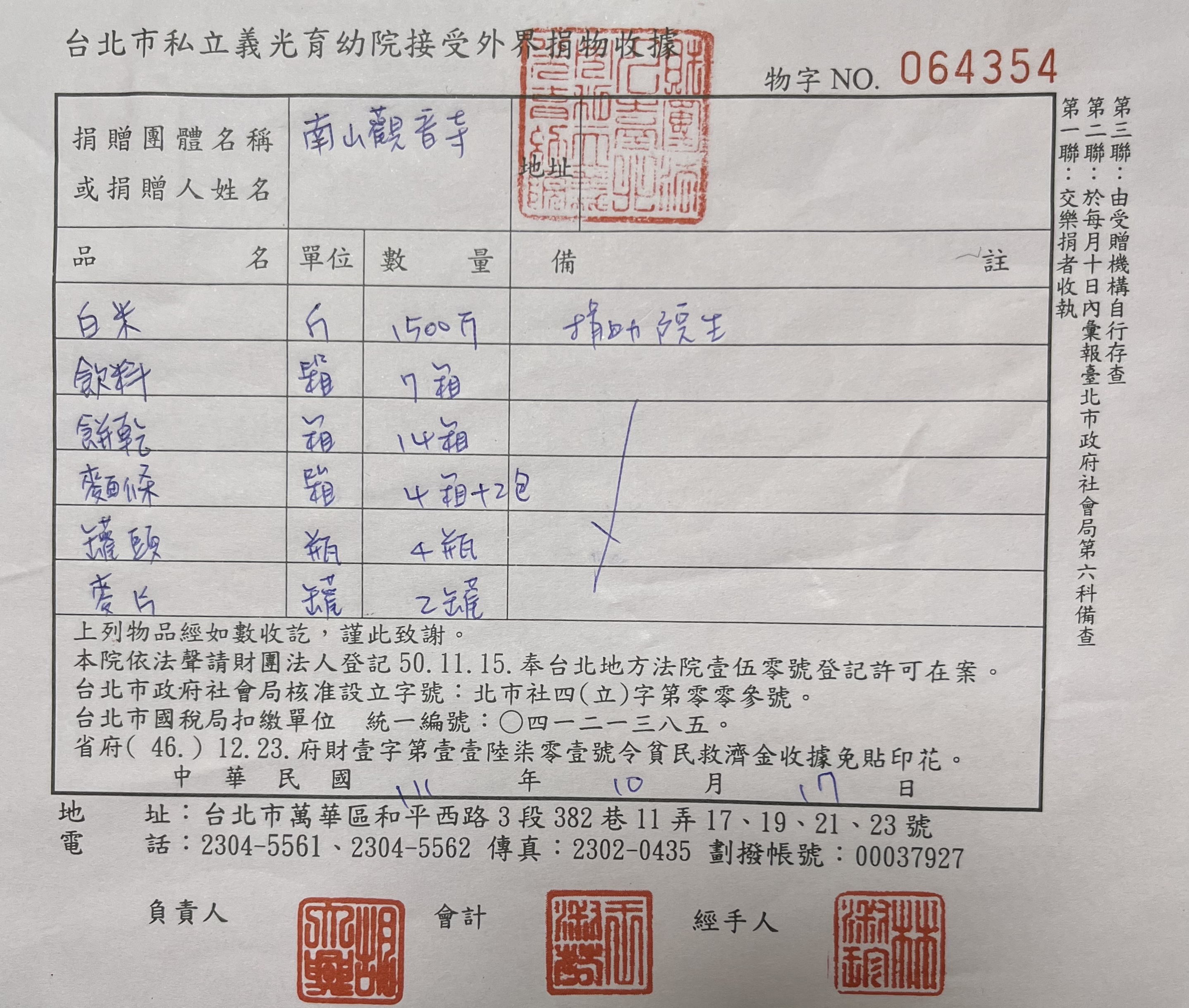 捐贈物資(義光育幼院)