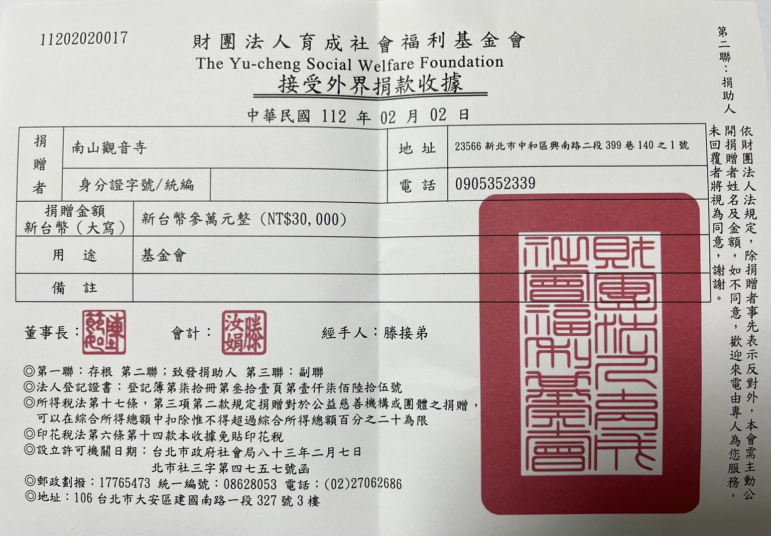 捐款(育成社會福利基金會)