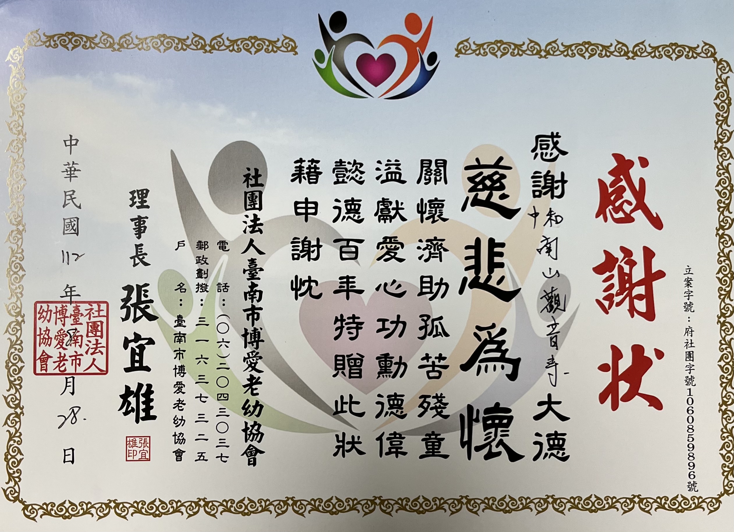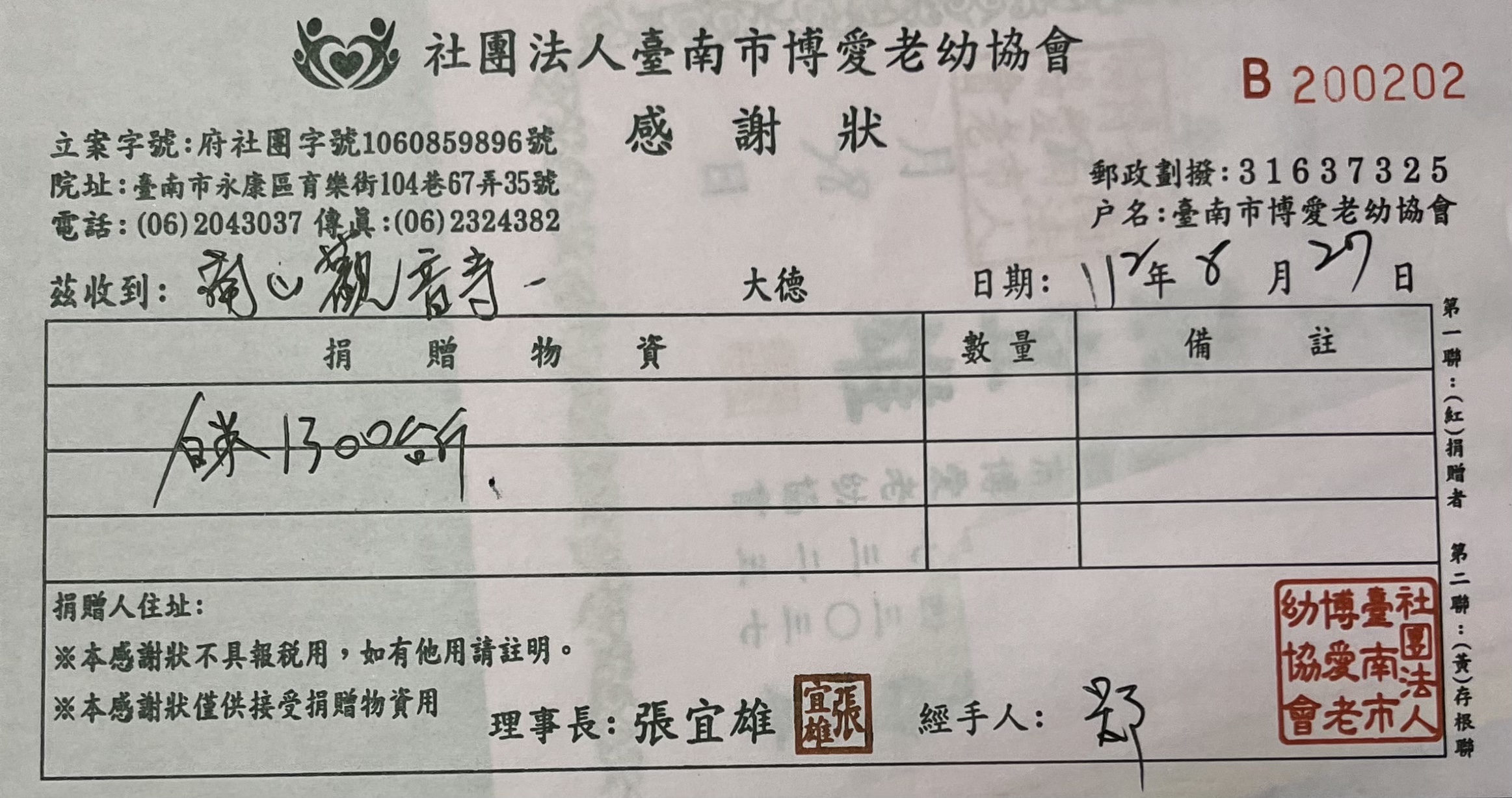 捐贈物資(台南市博愛老幼協會)