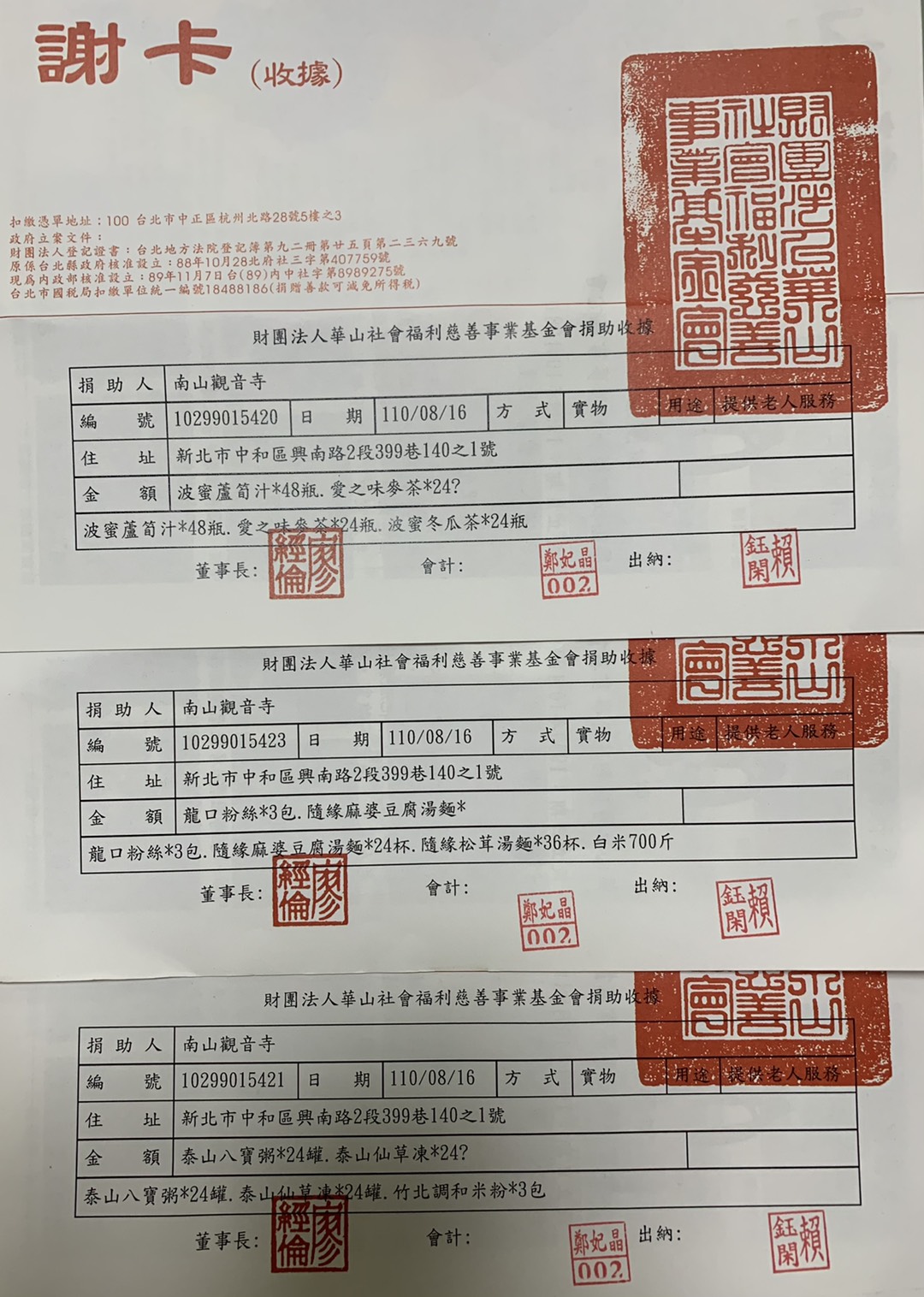 捐贈物品[財團法人華山社會福利慈善事業基金會]