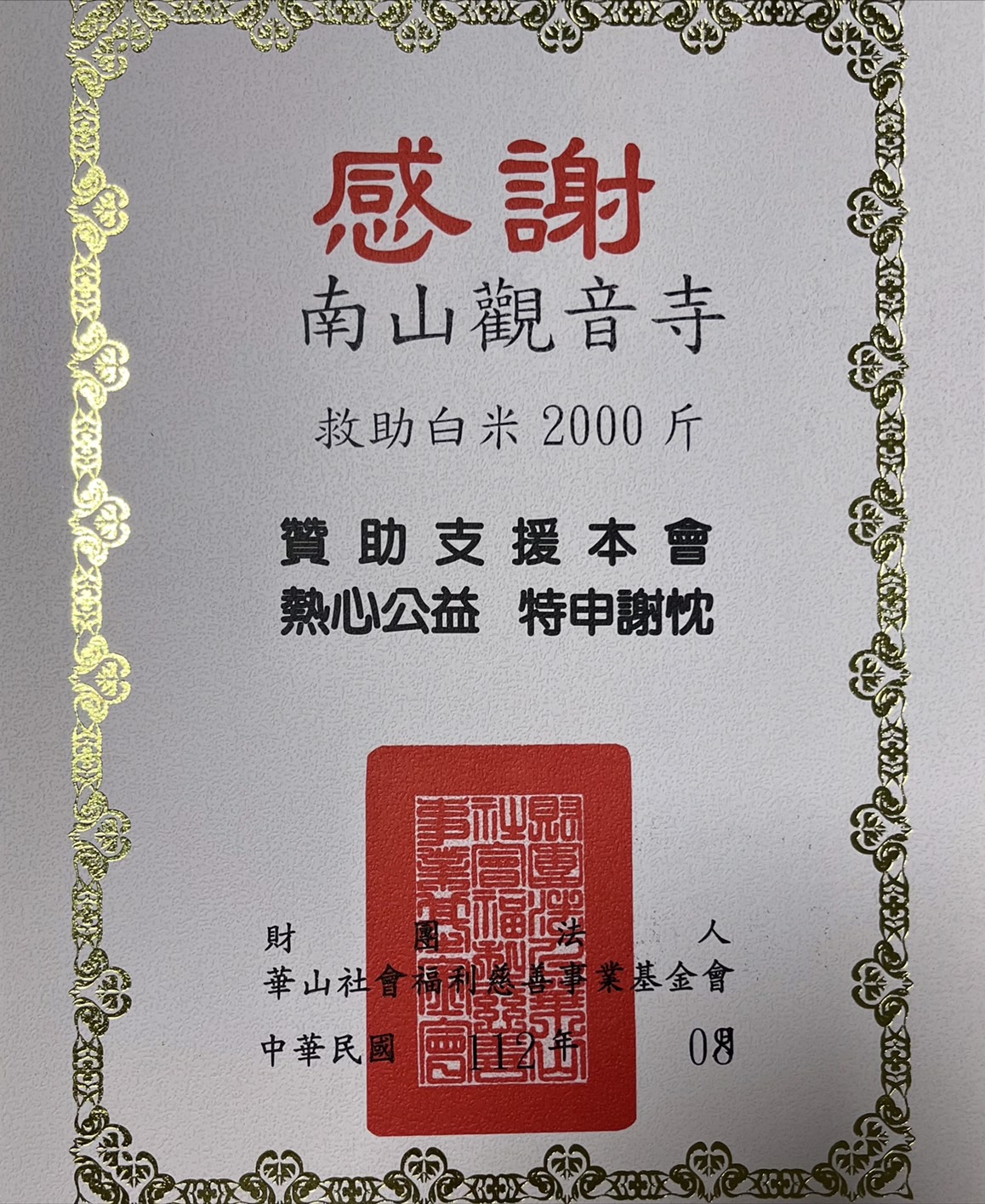 捐贈物資(華山社會福利慈善基金會)