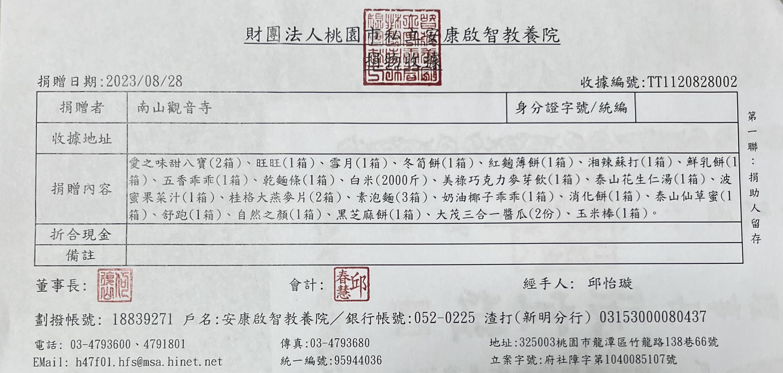 捐贈物資(桃園市安康啓智教養院)