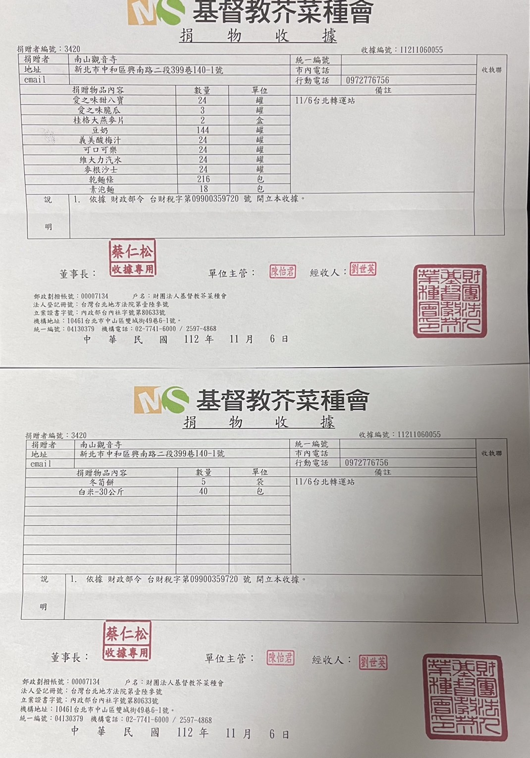 捐款物資(基督教芥菜種會)
