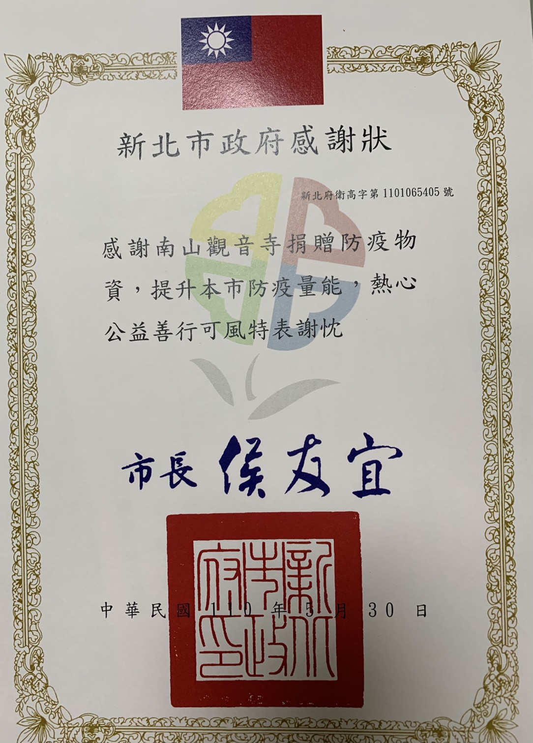 捐贈[新北市政府]防疫物資