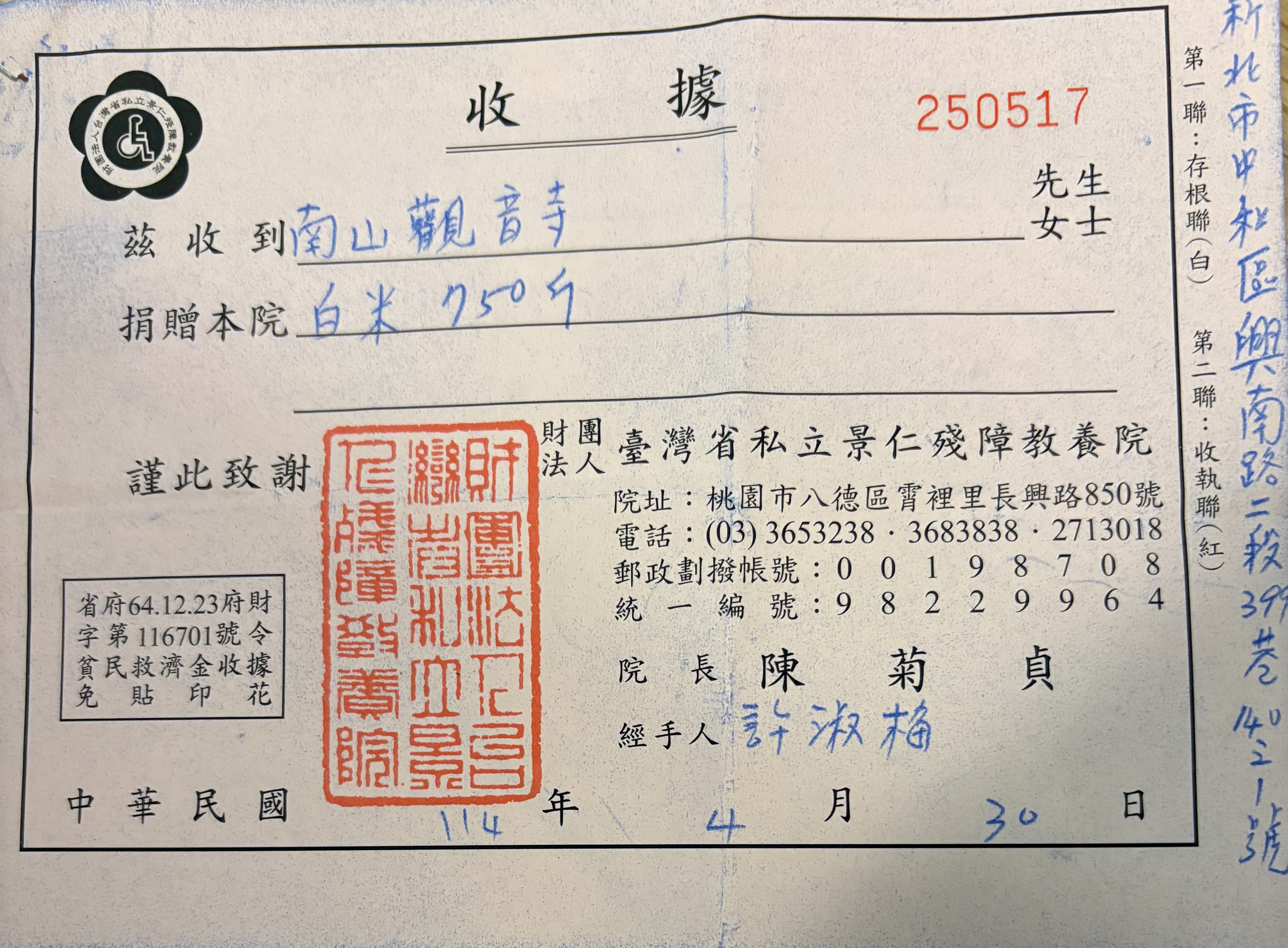 物資捐贈~景仁殘障教養院