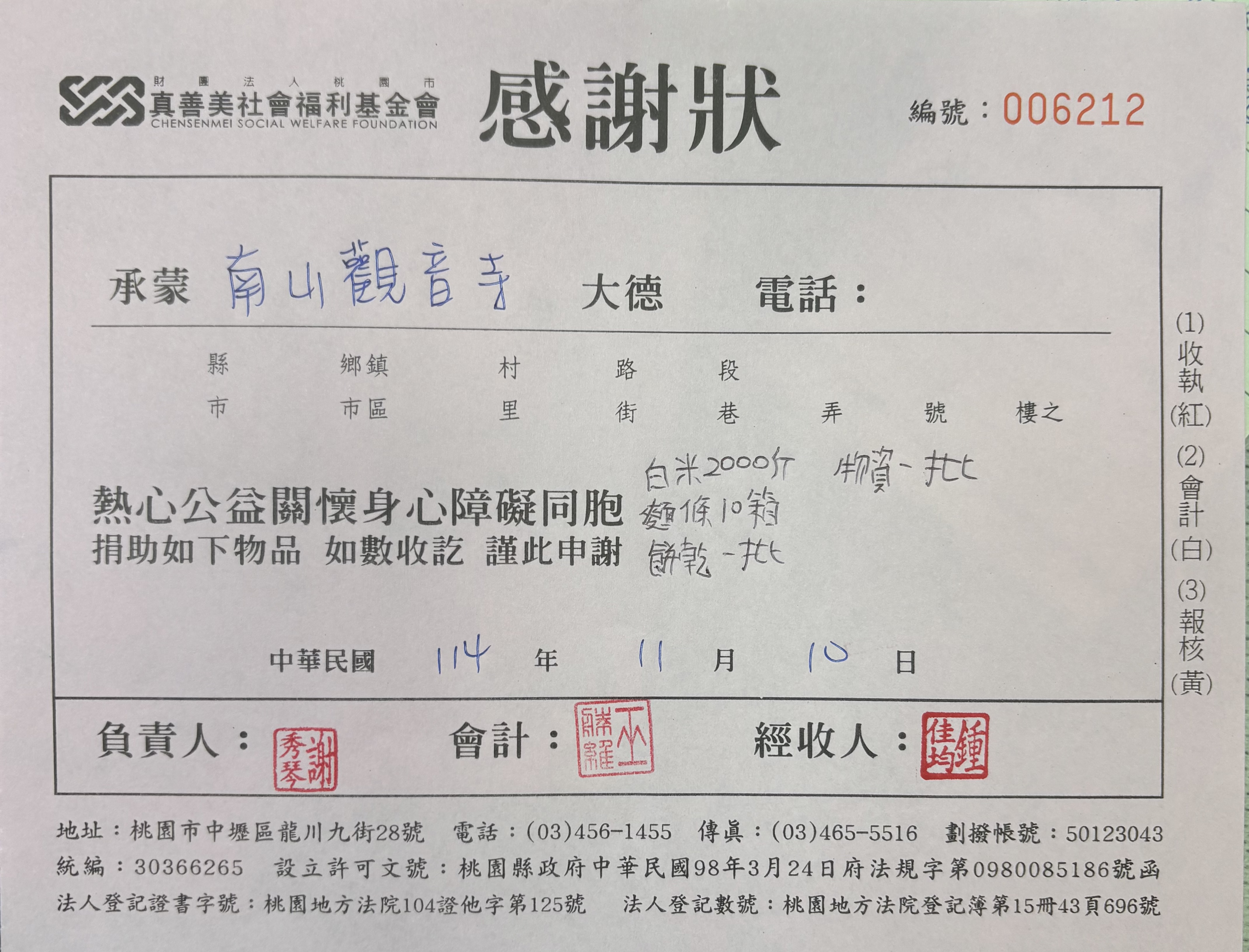 物資捐贈~真善美社會福利基金會